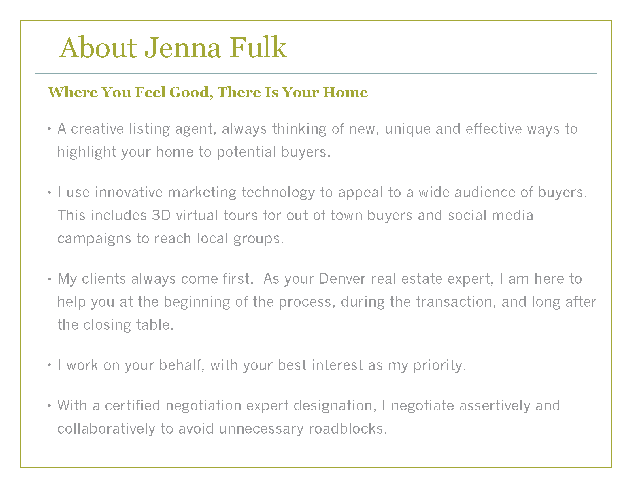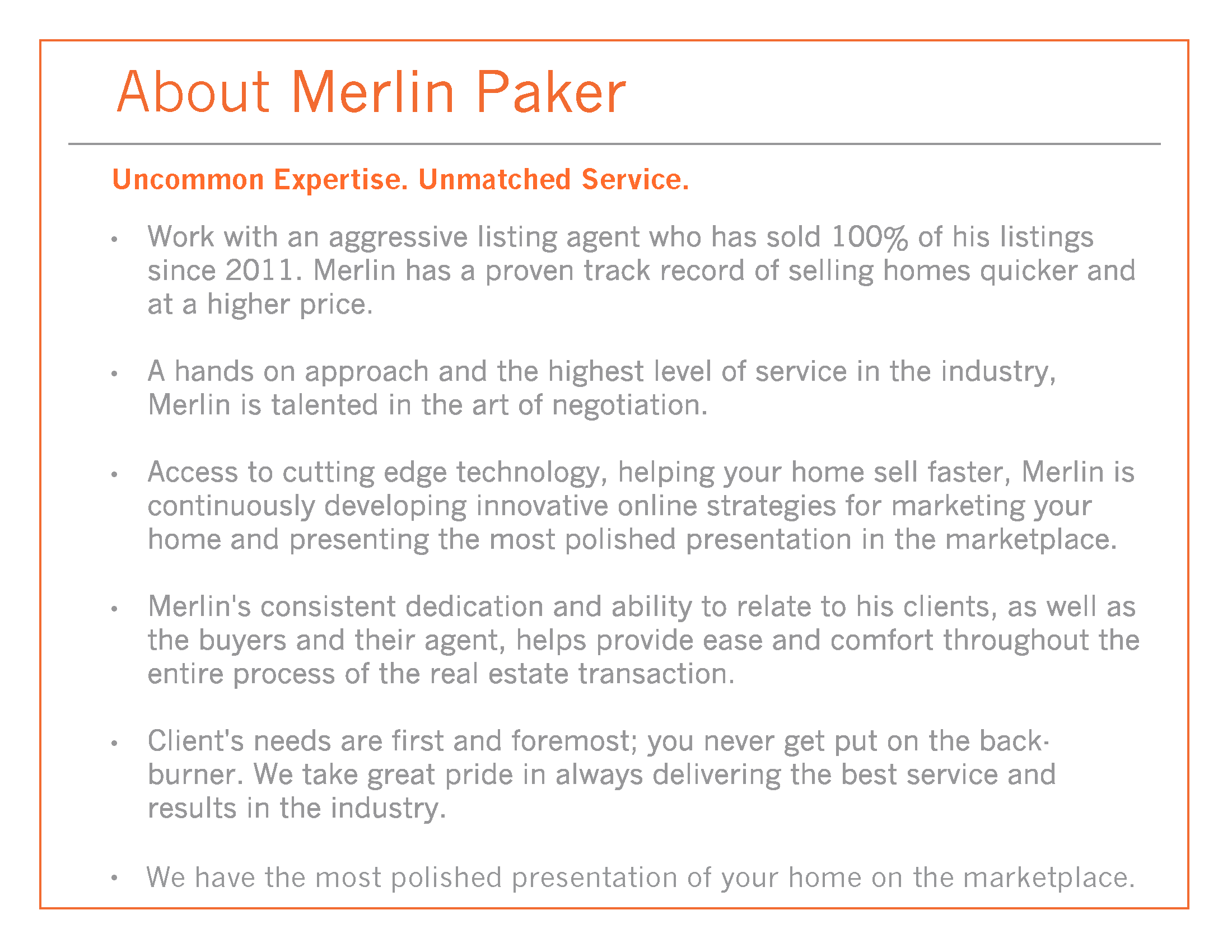 - Buyer’s/Seller’s Packets (Bio Cards, Local Maps, Buyer/Seller Process, etc) – $145 per item